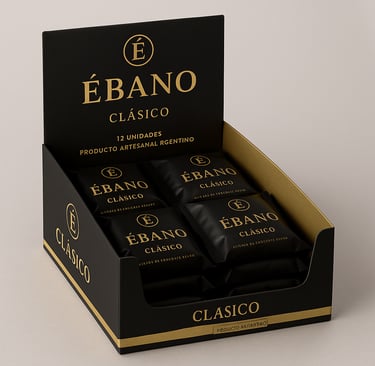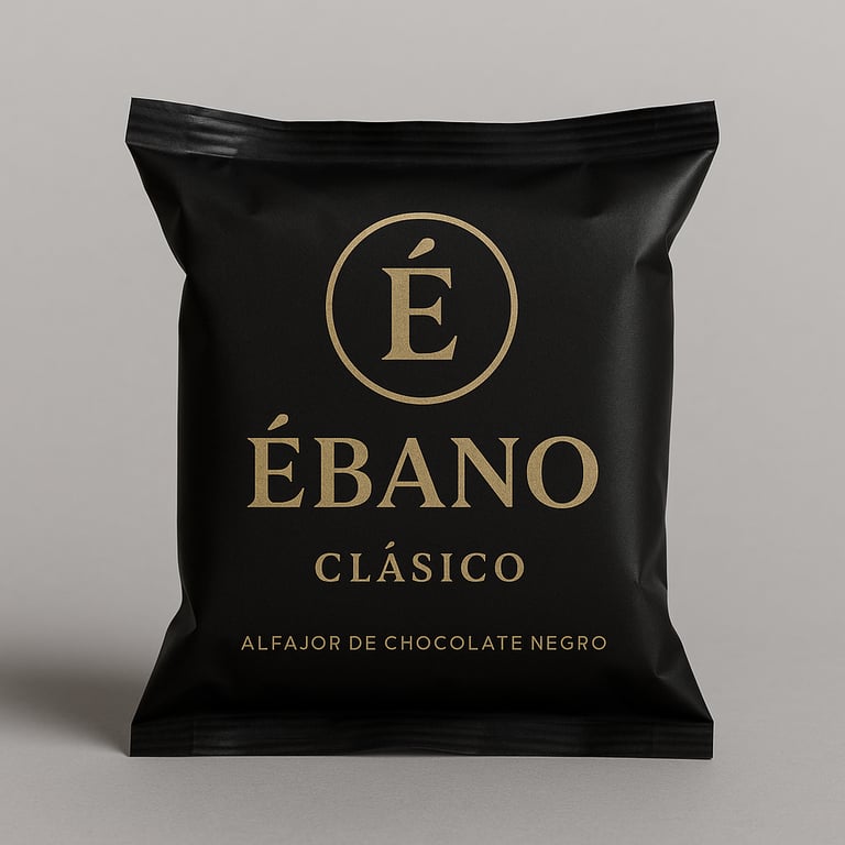 Alfajor con chocolate negro intenso y dulce de leche artesanal.